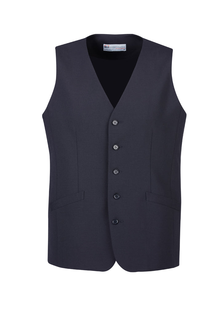 Sizes: 87R - 142R (AUS/NZ),34R - 56R (CA/US); Fabric: COMFORT WOOL STRETCH,55% Polyester 43% Wool 2% Elastane,Premium wool blend suiting with polyester for durability. With the added stretch and comfort of Elastane.; Features: Structured vest, perfect for wearing under jackets. With a 5 button front, self-fabric back, easy access embroidery zip and external pockets.;